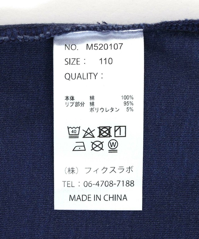 本体)綿100%リブ部分)綿95% ポリウレタン5%